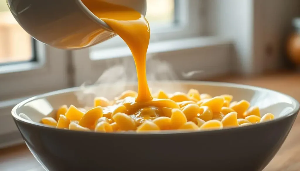 Gradually whisk in milk + cream. Cook until thick. Remove from heat → add seasonings → stir in the unreserved cheese (3½ cups) in 3 batches until silky.